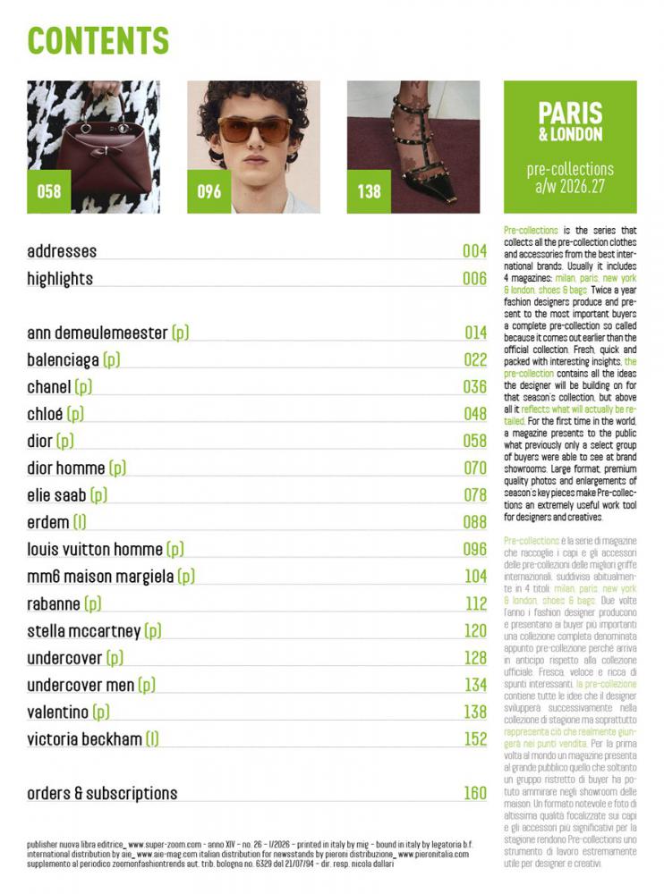Precollections is the leading magazine series curating the finest garments and accessories from international previews. For the AW 2026-27 season, the series is divided into two dedicated titles: Milan & New York and Paris & London.
